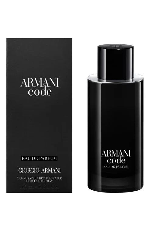 Giorgio Armani Code Eau de Parfum (100 mL) is a refined oriental-fougère fragrance that opens with fresh citrus and lavender, moves into a warm heart of tonka bean and spices, and finishes with smooth vanilla, musk, and suede. Elegant and modern, it's perfect for evening or formal occasions.