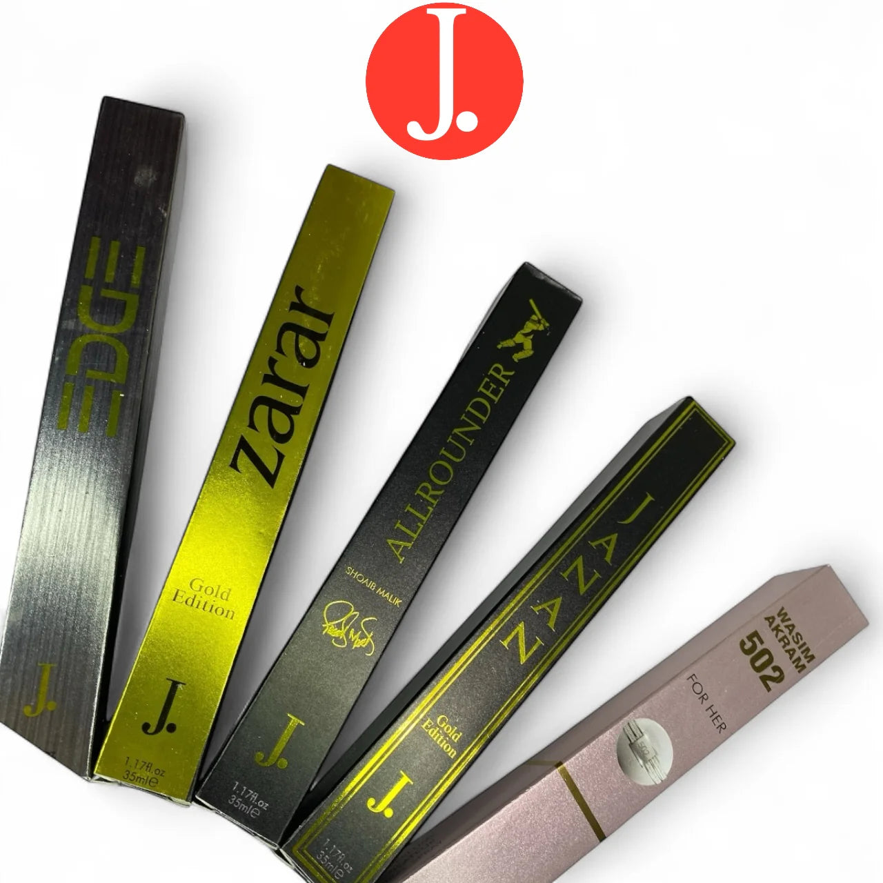 J. Perfumes Pack of 5 (35ml Each, Pen Perfume Edition) – A versatile unisex set featuring signature scents like Janan, Zarar, Essence, Exclusive & Bloom. Compact, stylish, and perfect for gifting. Cash on Delivery Available.